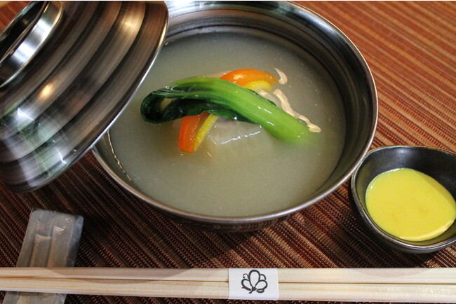 山翠楼料理長自慢の出汁と豆乳を合わせた吸地は出汁がふわりと香り、合わせた豆乳のまろやかさが気分も身体もほっこりと温めてくれます。