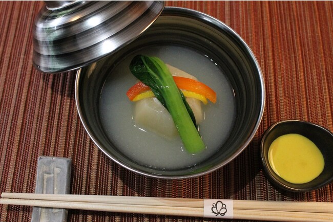 最優秀賞作品は「山翠楼料理長自慢の出汁を使って仕上げた和牛の射込みカブ 豆乳澄まし仕立て」。