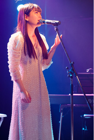 ライブでは、全国のラジオ局でパワープレイとなったデビュー曲「白馬の王子と薔薇色の私」をはじめ、高校2年生の時に出場したNHK「のど自慢」で歌唱し、見事チャンピオンとなった「みんな空の下」(オリジナル歌唱・絢香)や、先日放送されたテレビ東京「THEカラオケ★バトル」での歌唱が大きな話題となった「Precious」(オリジナル歌唱・伊藤由奈)といったカヴァー曲など、デビュー曲を手掛けた一青窈が“ホーリーボイス”と称した透明感溢れる歌声で全10曲披露した。