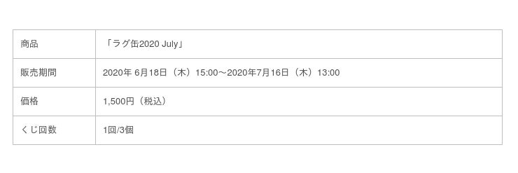 「ラグ缶2020 July」2020年6月18日(木)15:00販売開始