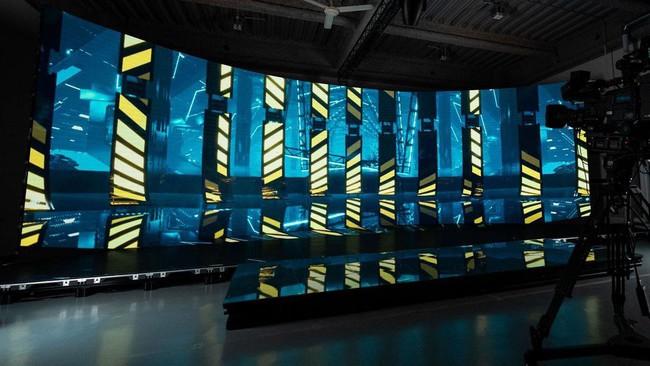 大型の高精細LEDディスプレイステージ、カメラトラッキングとリアルタイムエンジンを組み合わせたスタジオ。 3DCGなどの空間映像を壁・床のLEDディスプレイに映し、LEDディスプレイのない場所にも空間映像が続いているように合成することで、あたかもサバンナや宇宙など、別の広大な場所にいるかのように見せることができます。