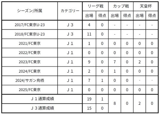 ※2021年順天堂大学所属時に天皇杯3試合出場1得点を記録