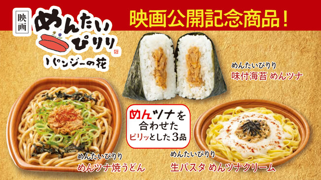 福岡で絶大な知名度を持つ「めんたいぴりり」の映画公開を記念して、映画のモデルである「ふくや」の人気商品「めんツナ(明太子とツナ)」を使用した商品を発売いたします。