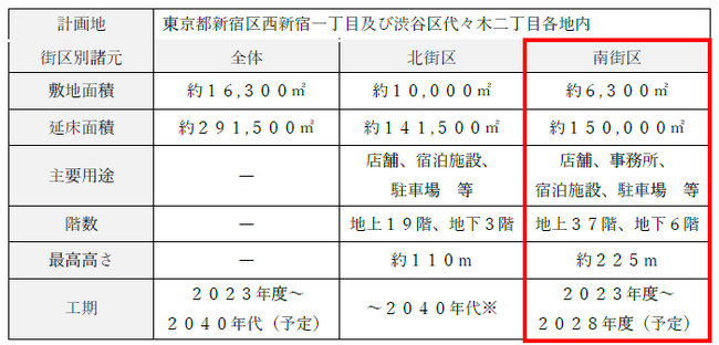なお、本計画のうち南街区開発および新宿駅改良工事は、2023年度より着手し、北街区開発の着手は南街区竣工後を予定しておりますが、計画内容については今後検討を進めてまいります。