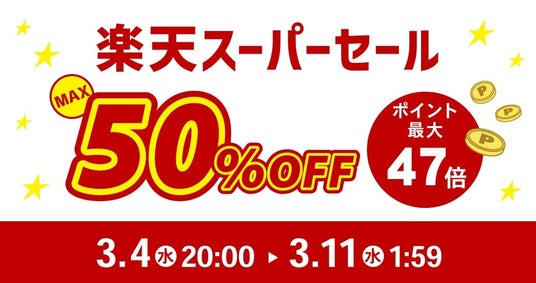 楽天スーパーSALEは3月11日(水)1:59までの期間限定開催。 この機会をぜひお見逃しなく!