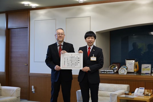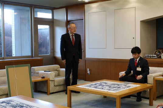 2026年2月19日(木)に寄贈受領式が行われ、鈴木英人展実行委員会の岡本晴広副実行委員長より、長坂尚登豊橋市長へ鈴木英人氏による作品≪終わりなき日々≫を寄贈いただきました。