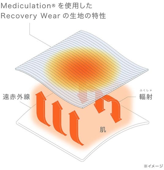 「Mediculation(R)」は、天然鉱石を原料とした高純度セラミックを練りこんだ特殊繊維です。遠赤外線の血行促進作用により疲労回復や筋肉のハリ・コリを緩和します。