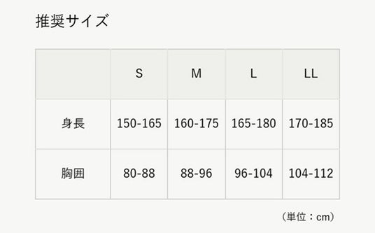 サイズ :S、M、L、LL(男女兼用)