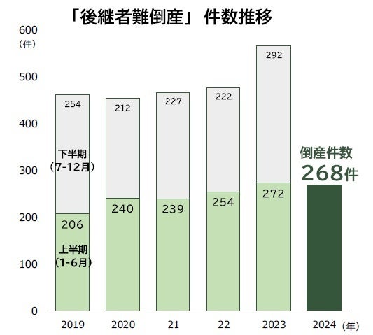 ■後継者難倒産 2024年上半期は268件発生 前年同期から減少も高水準で推移