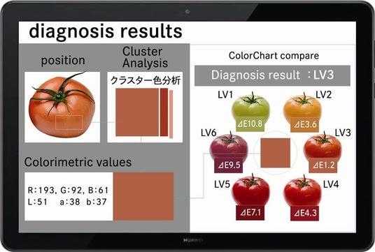 人の「目」と「経験」により判断していた色を数値化し、品質判断の自動化を実現するデジタルサービスです。DNP独自の色彩ロジックにより、高精度な色判定や詳細な色診断を実現します。スマートフォンで撮影するだけで、農作物の成長度合いを判定し、経験や勘に頼らず、客観的なデータにもとづいて、最適な栽培管理につなげることができます。