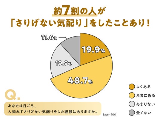 ■約7割の人が「さりげない気配り」をしたことがあるが、その一方で周りからは気づかれていないことも