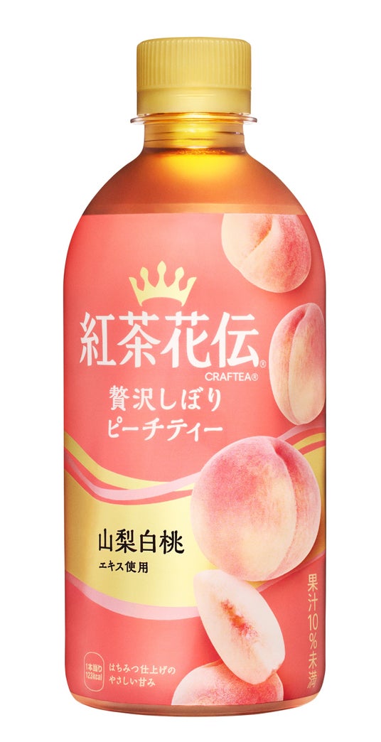 左から「紅茶花伝 ロイヤルミルクティー」、「紅茶花伝 クラフティー 贅沢しぼりピーチティー」、