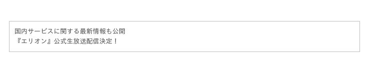 今回の生放送では、実際のゲームプレイを交えながら『エリオン』運営チームからゲーム内容の紹介をさせていただきます。また、番組内ではサービスに関する重要な情報も公開させていただく予定です。是非ご視聴いただき最新情報をご確認ください。