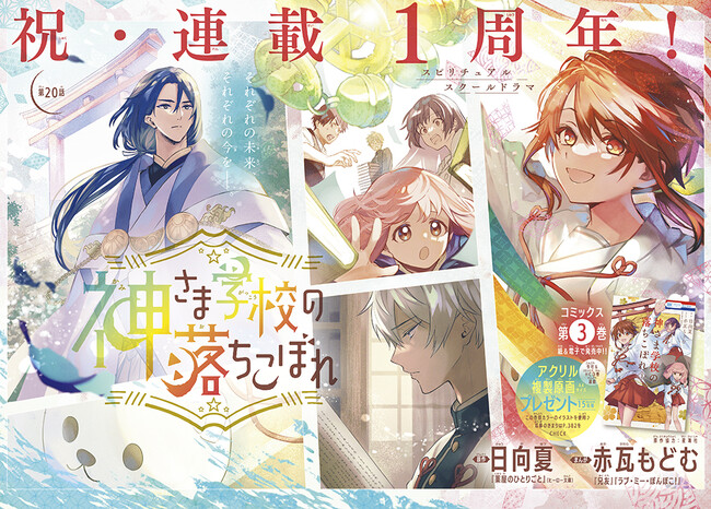 今号の巻頭カラーには、HC3巻が同時発売の「神さま学校の落ちこぼれ」(原作・日向夏/まんが・赤瓦もどむ/原作協力・星海社)が登場します。連載1周年を迎えた本作をお見逃しなく!