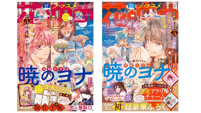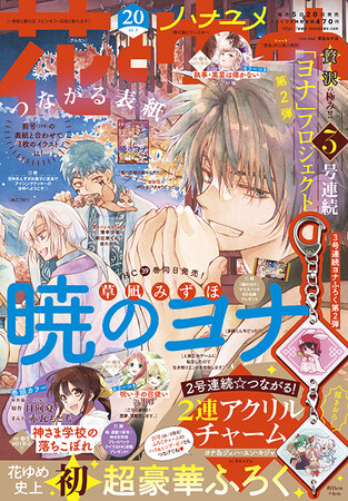 また、今号は表紙にも「暁のヨナ」が登場! 前号の『花とゆめ』19号の表紙と合わせて1枚のイラストになる仕様となっています。つながる表紙でヨナイラストをお楽しみください。
