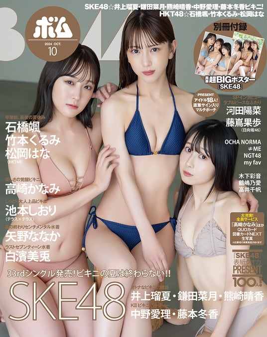 【BOMB10月号の表紙はSKE48の井上瑠夏・鎌田菜月・熊崎晴香!!】