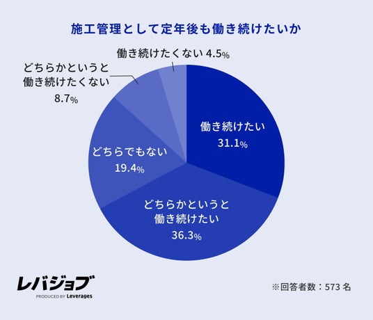 レバレジーズ株式会社が運営するエッセンシャルワーカー向けキャリア支援サービス「レバジョブ」(https://levjob.jp/)は、施工管理職573名を対象に、キャリアに関する実態調査を実施しました。