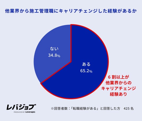 - 施工管理職の6割以上が他業界からのキャリアチェンジ、製造・販売業出身者が多数
