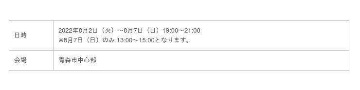 2022年8月2日(火)~2022年8月7日(日) 青森市中心街