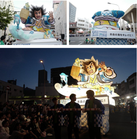 期間中、青森山田ねぶた実行委員会の運行日に合わせ、ねぶたの隊列の中に、前ねぶた「CHANGE FOR THE BLUE ねぶた」を登場させ、観光客などに対し、海洋ごみ削減を呼びかけます。