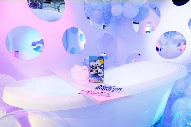 「ゆるんとジャグジー気分Café」は、会場内に設置されたバスタブに入りながら、ゆるんと長~く心地よいオフロ時間を疑似体験できる、期間限定の体験型イベント。新商品である『バブ MONSTER BUBBLE ゆるんとジャグジー気分』をイメージしたオリジナルの香りや、『バブ MONSTER BUBBLE』の炭酸ガスの発泡音をベースにしたチルミュージック、カフェドリンクなどを組み合わせ、本商品のコンセプトや「こんなオフロがあったらいいな」を体験できる空間を実現。イベント参加者の皆さまに「ゆるんとジャグジー気分」の世界をお楽しみいただきました。