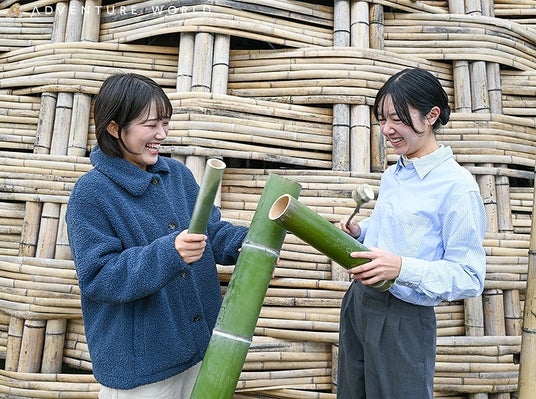 アドベンチャーワールド(和歌山県白浜町)では、竹を活用した楽器作りと演奏を楽しめる特別イベント「竹パンダフォン ~パンダバンブーで奏でる100人演奏会~」を2024年12月7日(土)・8日(日)の2日間開催します。パンダが食べない部分の竹でそれぞれ思い思いの楽器を作り、100人で音楽を奏でる楽しさと一体感を体験していただくことができます。持続可能な自然素材にふれ、創造性や探求心を楽しみながら育むイベントです。当日は、作曲家であり、国内外で活躍されるサウンドアーティストのサキタハヂメさんと竹アドバイザーのバンブー池田さん(竹の杜)をゲストに迎え、楽器制作や音楽の魅力をお伝えいたします。