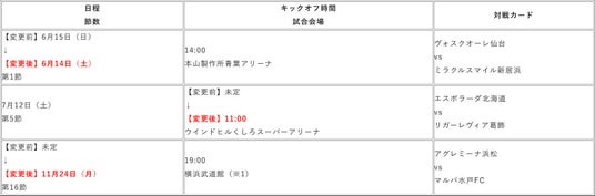 新たに「メットライフ生命Fリーグ2025-26 ディビジョン1」「メットライフ生命Fリーグ2025-26 ディビジョン2」の正式名称となるF1・F2の一部試合において開催日時・会場が変更されました。