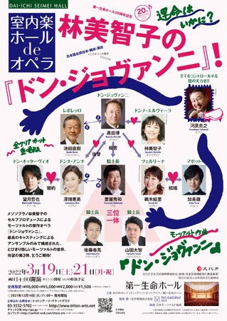 「室内楽ホールdeオペラ~林美智子の『ドン・ジョヴァンニ』!」が2022年3月19日(土)~3月21日 (月・祝)に第一生命ホール(東京都中央区)にて開催されます。