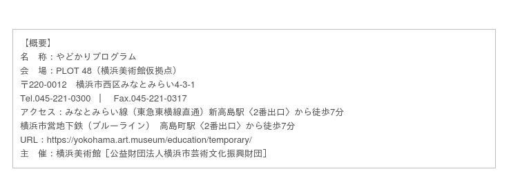 申込受付期間:後日横浜美術館ウェブサイトに掲載