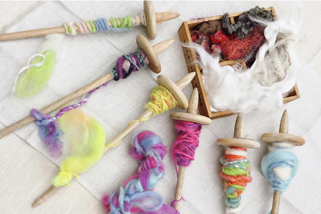 何色もの羊毛の中から好きな色を組み合わせて、スピンドルという道具を使用して糸を紡ぎます。講師が海外で見聞きした生活の中の糸紡ぎについてもお話しいただきます。