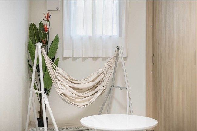 ・レコードとハンモックがある部屋で音楽を聴きながらまったり過ごせる