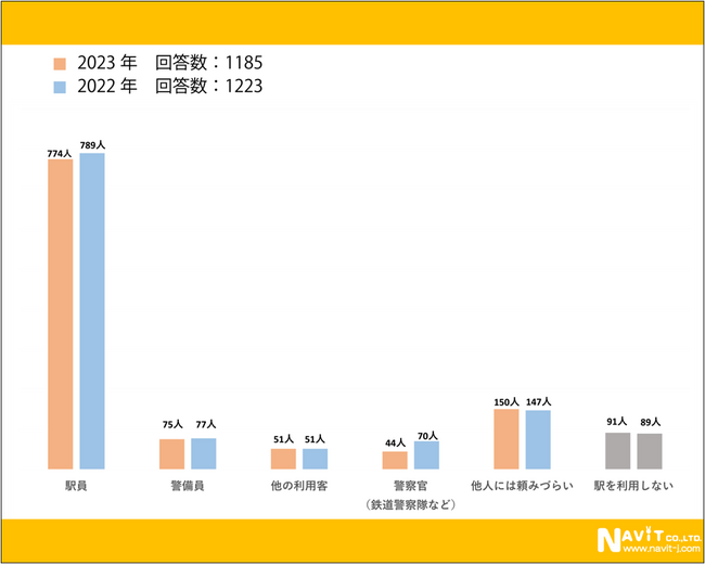 駅で困ったとき、誰に手助けを求めたいですか?(回答数:1185)※対象者:1000人