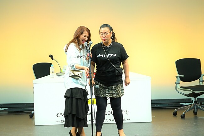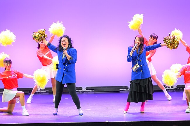 イベントの序盤からは、軽快な音楽にのせオーバーメイツ(ダンスチーム)が登壇。まさかのオープニングに驚嘆と困惑が広がるなか、往年のバブル風ファッションで身を包み、パーソナリティのジェーン・スー(コラムニスト・作詞家)と堀井美香(フリーアナウンサー・ナレーター)が姿を見せると、会場内のボルテージは一気にピークに。
