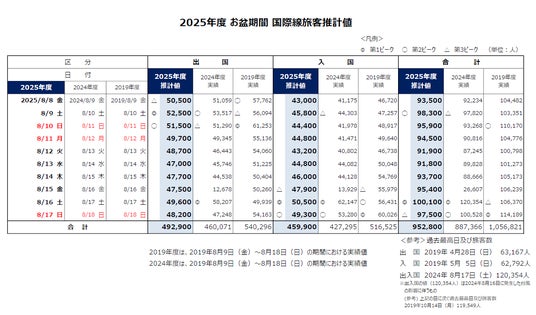 成田国際空港株式会社はこの度、本年お盆期間中に成田空港をご利用になる旅客数の推計を取りまとめましたので、お知らせいたします。