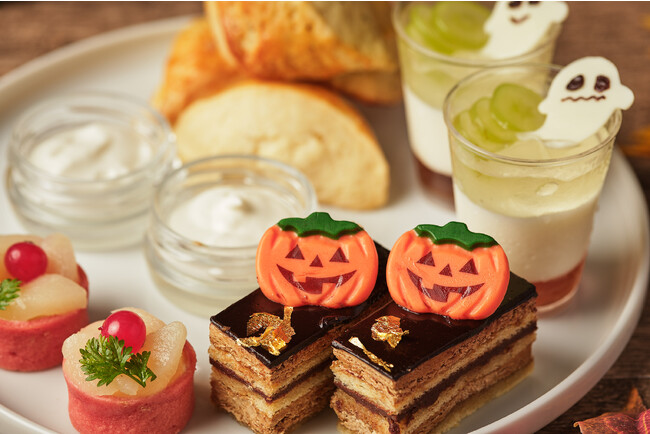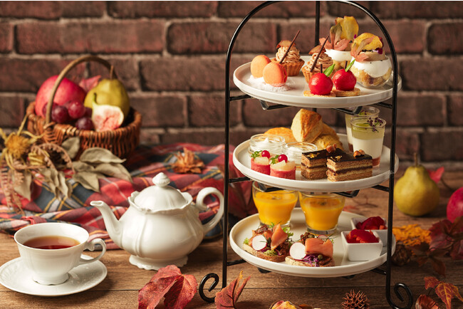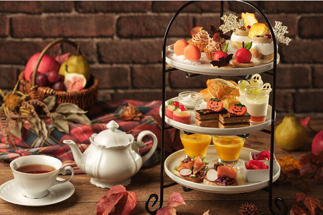 シーズン毎にテーマを設定し、専属パティシエが手掛ける繊細で華やかなスイーツをご堪能いただける人気のアフタヌーンティー。オータムシーズンは“トリート(もてなし、ご馳走)”をテーマに、芋・栗・かぼちゃをはじめとする秋の味覚をふんだんに使用したハロウィン・スイーツをご用意いたしました。