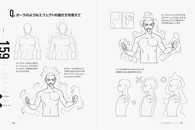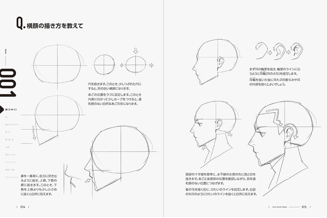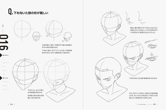 実際に読者の質問を受け付けて著者が答えるというQ&A形式で行われた連載を書籍化したものなので、作画上でぶつかるリアルな悩みを解決するヒントが満載。収録内容は、性別や年齢による微妙なパーツの位置の変化、飴など口に何かを含んだ顔、水中にいる人物、風になびく衣服のシワ、オーラの描き方など、多種多様で実用性に優れています。また、できるだけシンプルに、簡単に解説できるノウハウを中心にまとめています。基本を説明する配慮もいっぱい込められているので、初心者でも簡単に描き始められます。本書で教えた通りに描いてみると、まるで先生が寄りそって絵を完成させてくれるような気分を味わえるでしょう!