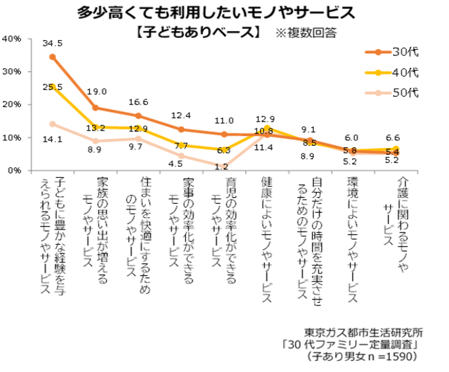 コロナ禍による暮らしの変化がポジティブに受け止められる一方で、30代ファミリーにとって不満となっていたのは「家族の体験・思い出が減ったこと」です。子どもの経験・体験が足りないことに不安を感じており、お金をかけてでも経験・体験を増やしたい気持ちがあることがわかります。