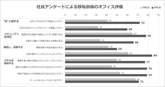 ※麻布台本社オフィスを本拠地とする従業員を対象に、オフィス移転後の影響を調査