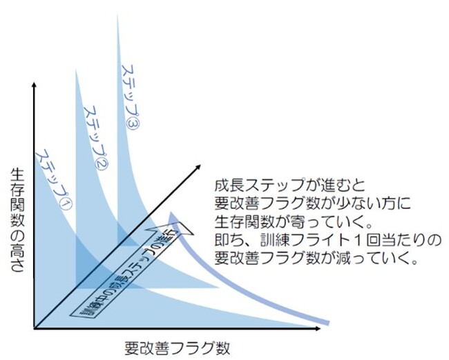 (*1) ある現象が起こる確率を数学的に表現したものであり、ここでは訓練中に記録されるフラグが1フライト当たり特定の回数付与される確率の推移を表現したもの