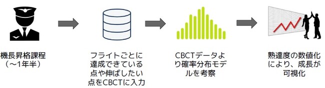 これらの確率モデル化によって、従来感覚的に理解されてきたパイロットの成長過程に関する基本的な性質を定量的に表現できるため、訓練インストラクターが被訓練者の改善の兆候や訓練効果をいち早く認識し、より効果的な訓練を実施する手助けとなる効果が期待されます。また、これによる結果として、訓練期間が短縮され、今後のパイロット不足の軽減につながることも期待されます。