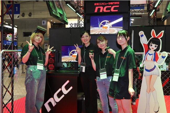 NCCは「ゲームクリエーター科」「キャラクターデザイン科」「CG・Webクリエーター科」など将来ゲーム業界で働こうと夢見る学生が在籍しています。この東京ゲームショウへのブース出展は、その夢を現実のものとするためにNCCが授業に取り入れている取り組みの一つです。