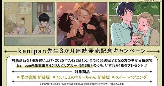 ホーリンラブブックスでは、kanipan先生の3ヶ月連続発売を記念して豪華キャンペーンを実施いたします!
