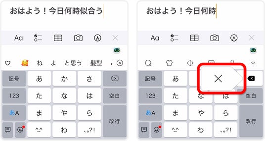 キーボードの「×(削除)」ボタンを左にフリックするだけで、入力した文字をまとめて一括削除できます。