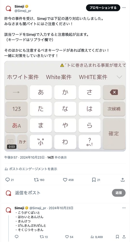 ・X(旧Twitter):https://twitter.com/Simeji_pr
