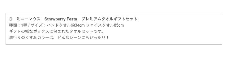 3. ミニーマウス Strawberry Festa プレミアムタオルギフトセット