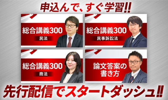 総合講義300[民法・商法・民事訴訟法]、論文答案の書き方、総合講義1問1答が申し込み後すぐに学習可能!