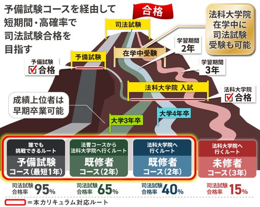 本カリキュラムは、最難関と言われる予備試験突破、そしてその先の司法試験合格までを最短距離で駆け抜けるために設計されています。予備試験合格者の司法試験合格率は、他のルートを圧倒しており、予備試験対策を極めることこそが、司法試験合格への最も確実な近道となります。