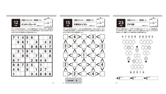 計算力やワーキングメモリなどを鍛えることができる計算問題のほか、空間認知力がアップする問題を多く収録しました。それぞれの問題に難易度と目標時間を設定しているので、それらを目安にしながら日々チャレンジしましょう。答えがわからなかったら解答を見ても大丈夫。ワクワクしながら取り組んで、楽しく続けることを目標にしましょう。