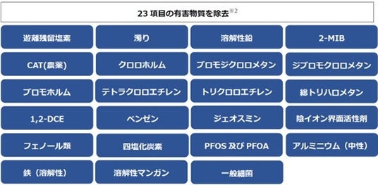 有機フッ素化合物(PFAS)の一種であるPFOS及びPFOAについても、浄水器協会(JWPA)で定められた規格基準(JWPAS B基準)に規定された試験方法による試験を実施し、除去できることが確認できました。