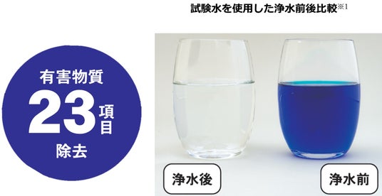 ※1 水道水200mlに対しメチレンブルー溶液50mlを加えた試験水を用いて浄水前、浄水後を比較。当社調べ